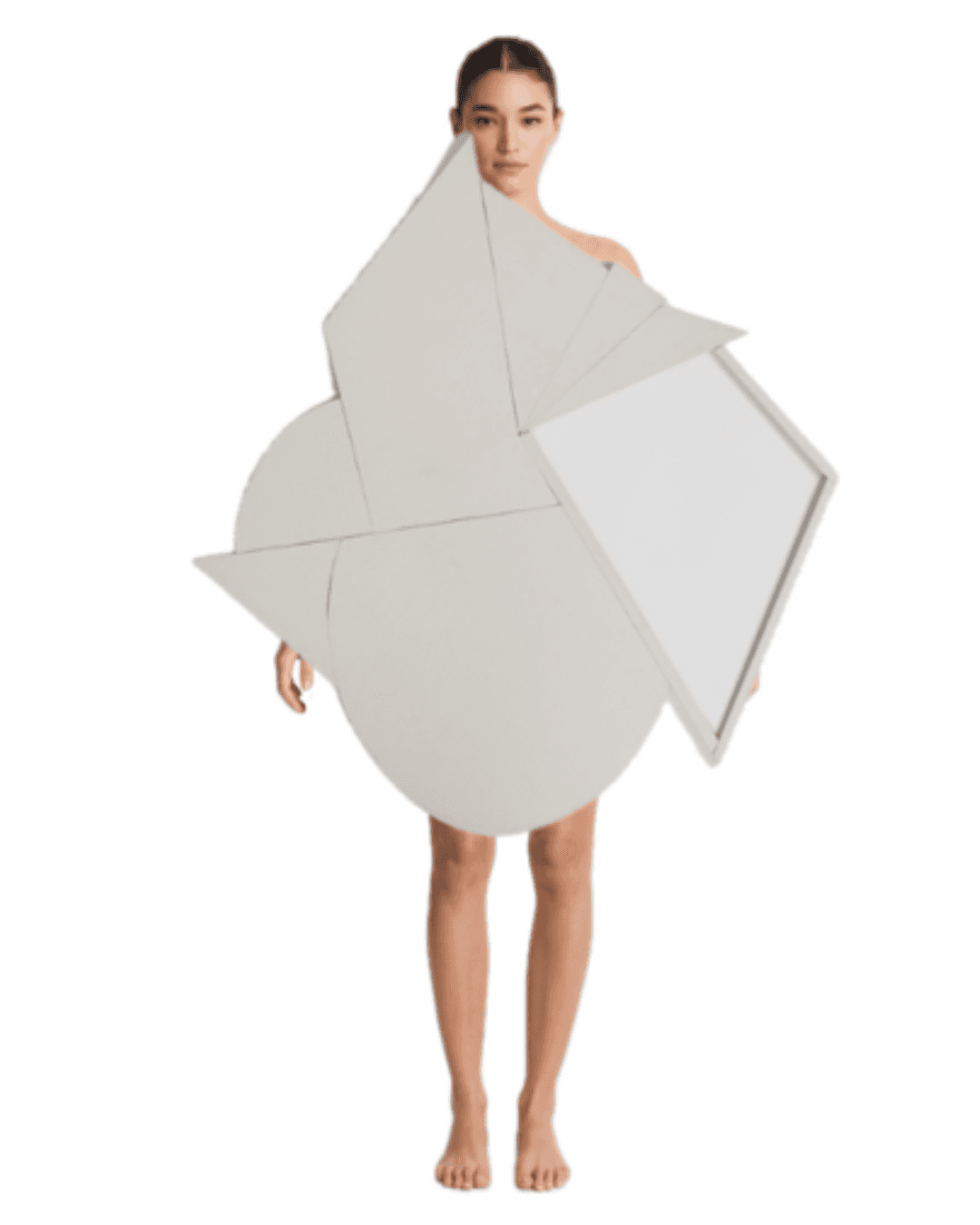 Como base conceptual del proyecto, he escogido la figura de un rectángulo con un lateral distorsionado. Esta forma representa la perfección aparente que con el tiempo se fragmenta y se transforma. Es un símbolo de cambio, de imperfección y de cómo lo que parece estable puede mutar en distintos mundos y estados.